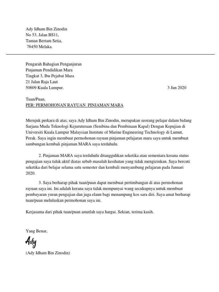 Surat Rasmi Permohonan Rayuan Mara Pdf